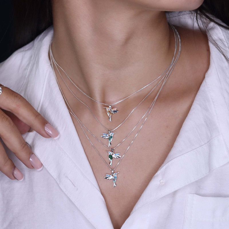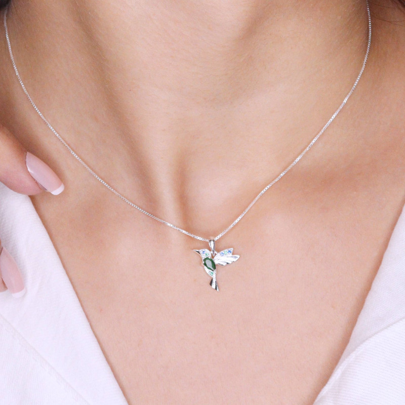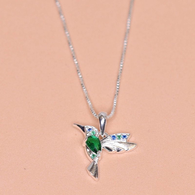 Colar de Prata Beija Flor Coleção Florescer Zircônia Esmeralda 45cm