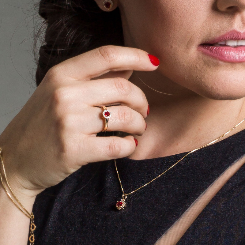 Anel em Prata Revestido com Ouro 18K Redondo com Zircônia Branca e Vermelha 7mm 00200