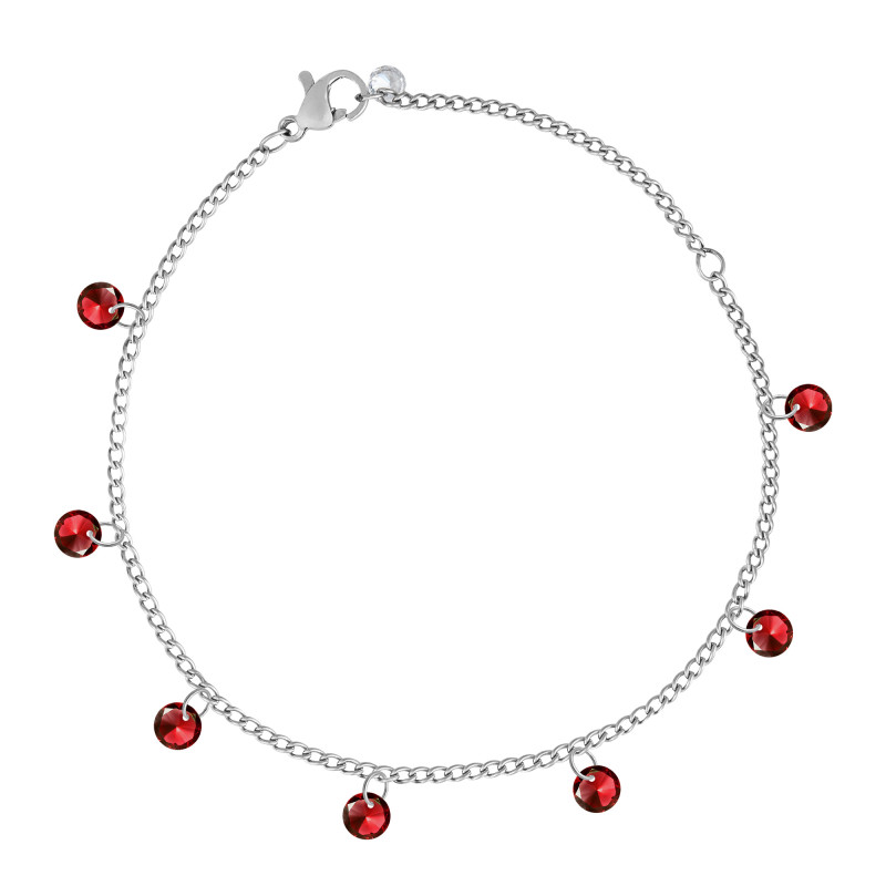 Pulseira de Aço com Zircônias Vermelhas 5mm 21cm