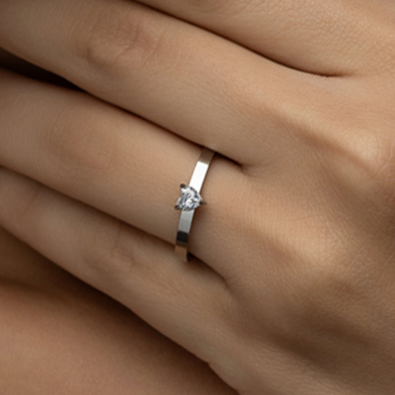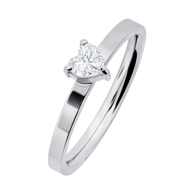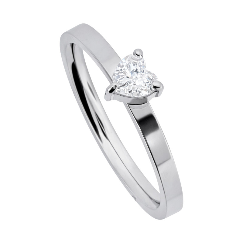Anel de Aço Solitário Love Zircônia Coração 5mm