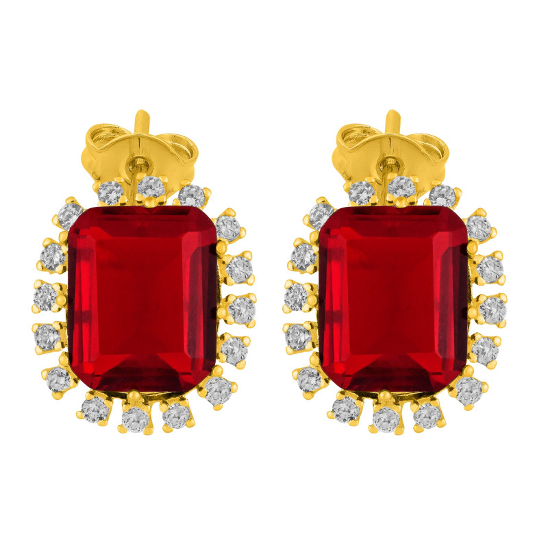Pedras: 16 Zircônias Brancas de 1,5mm e 1 Cristal Retangular Rubi 8x10mm