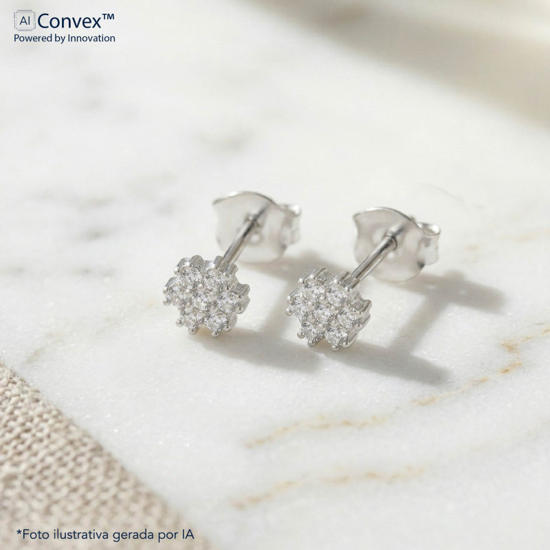 Brinco de Prata Coleção Florescer com Zircônias Brancas