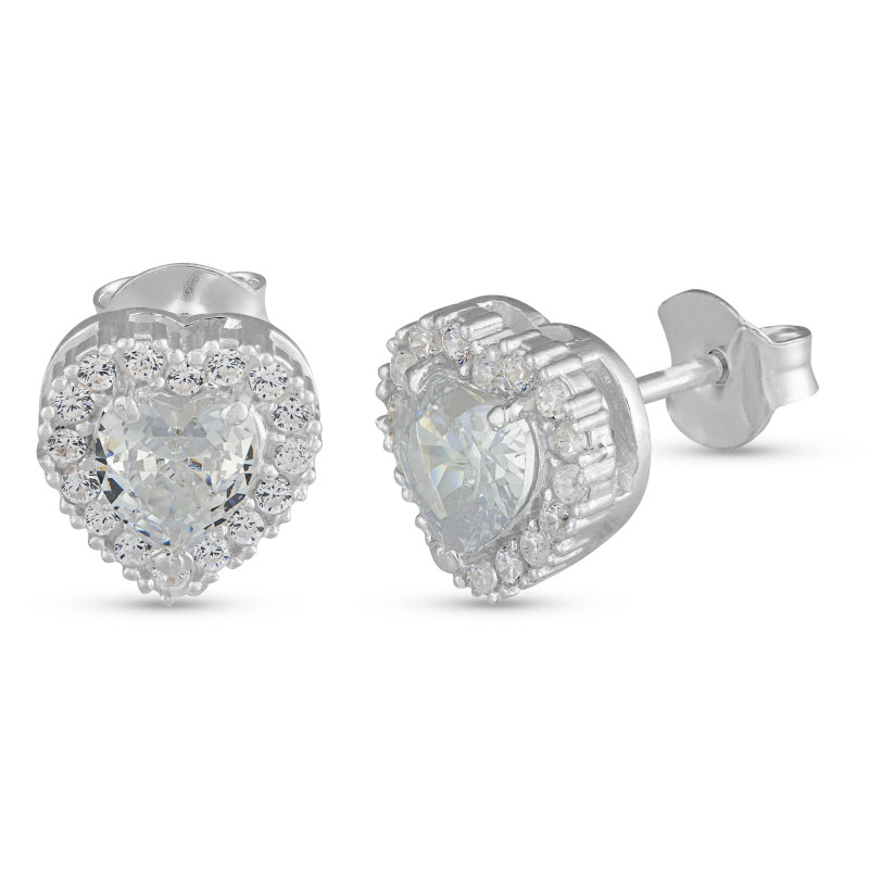 Brinco de Prata Coleção Fancy Coração Cristal 8x8
