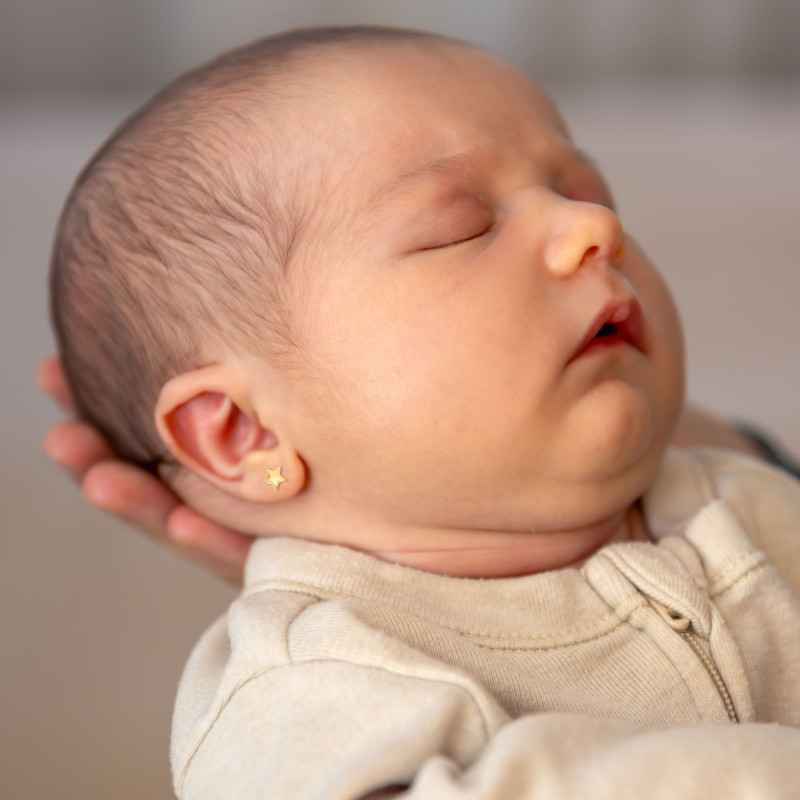 Brinco de Ouro 18K Estrela Tarraxa Baby