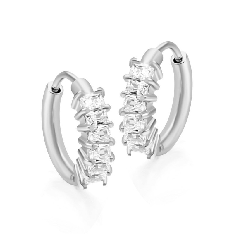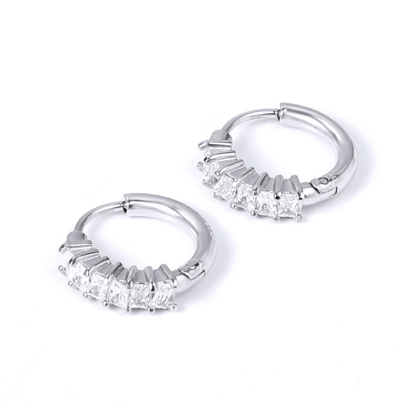 Brinco de Aço Argola Festa com Zircônias