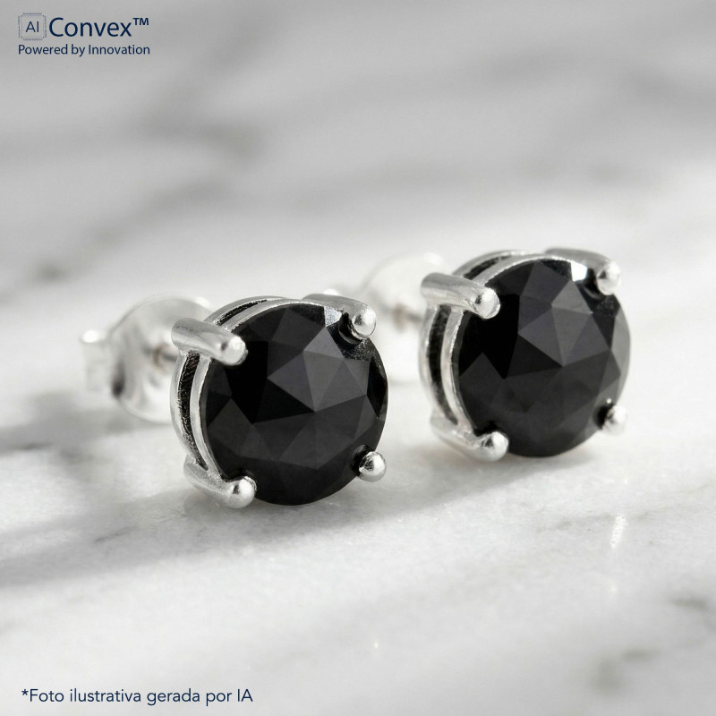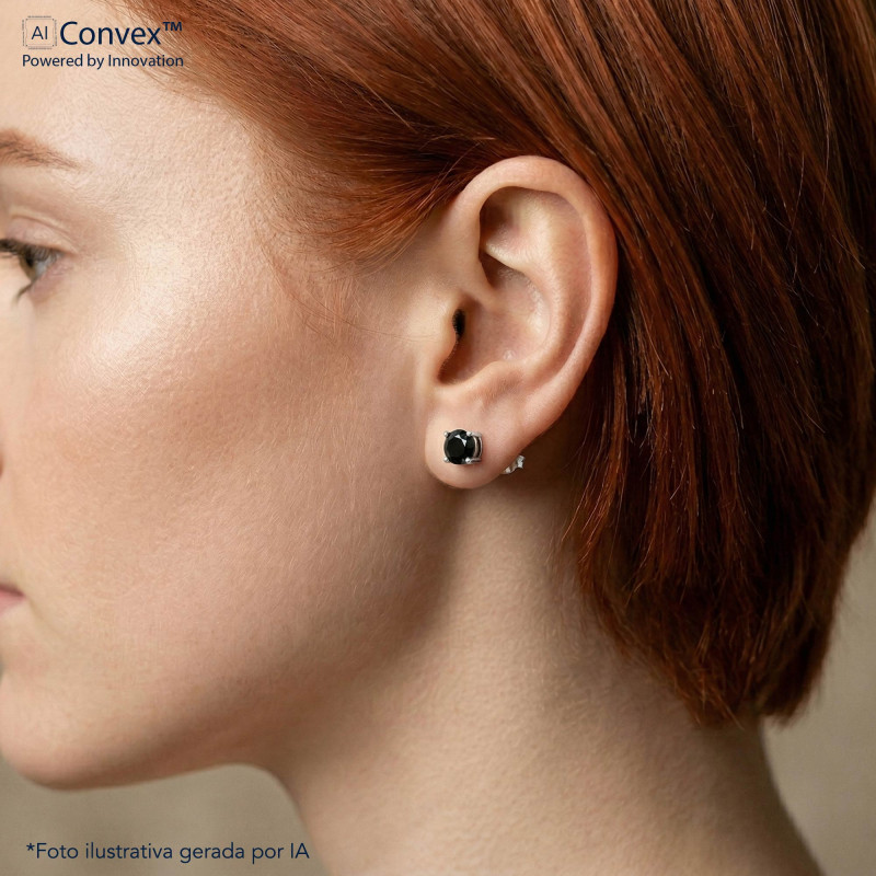Brinco de Prata Ponto de Luz Coleção Fancy Zircônia Negra 5mm