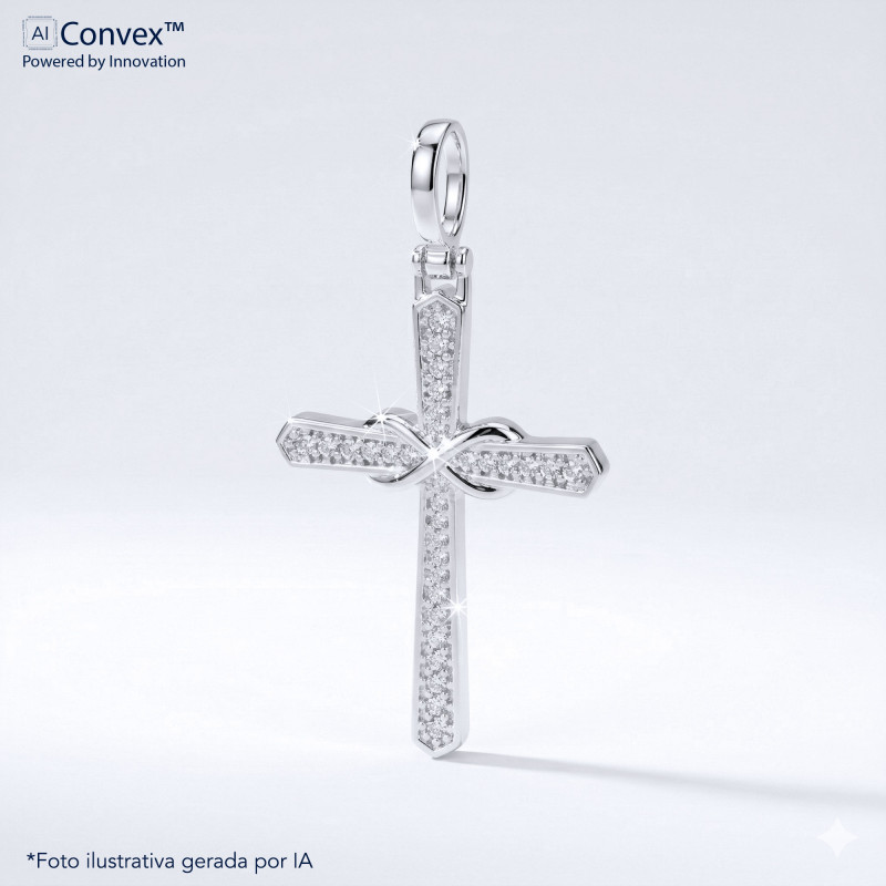 Pingente de Prata Cruz Infinito com Zircônia Branca 30x20