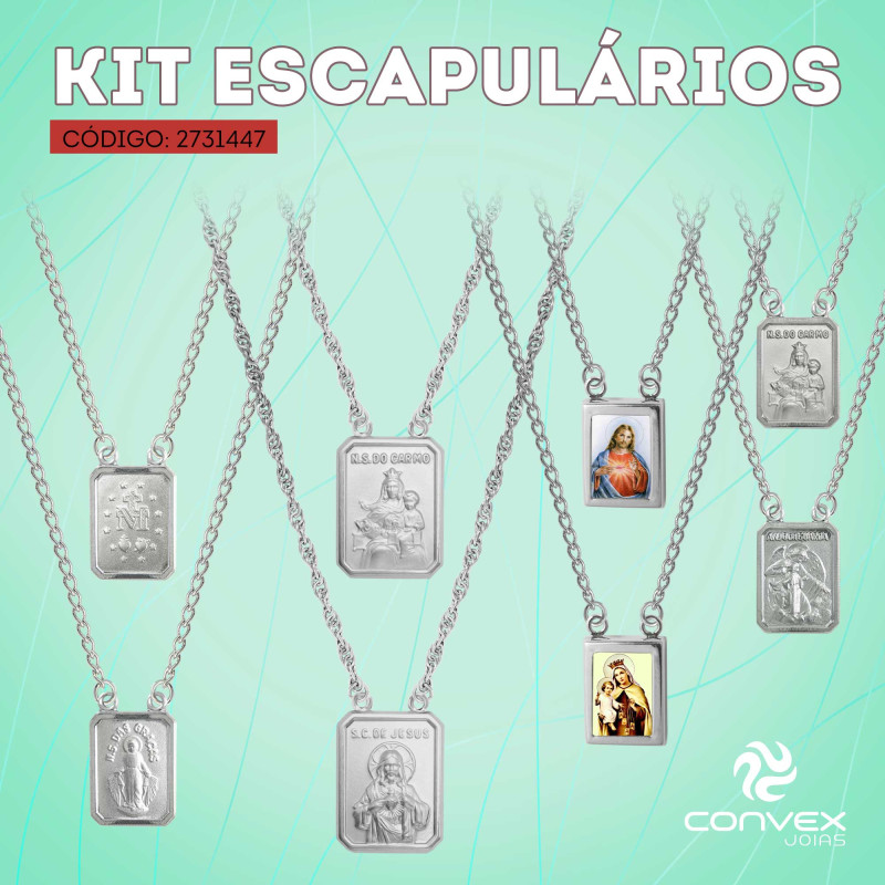 2 2434260 Escapulário de Aço NSra do Carmo e Sagrado Coração de Jesus Resina 14x11mm 45cm