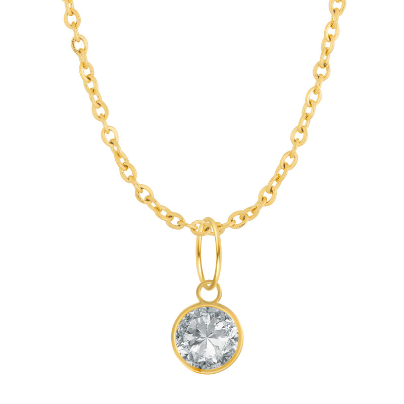 Colar Ponto de Luz Zircônia Cristal Ouro 10 Corrente Aço IPG 45cm 00013