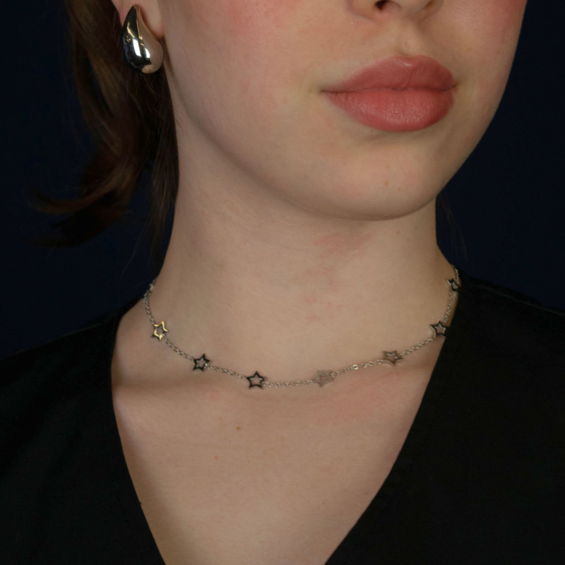 Colar de Aço Estrelas 40cm + 5cm extensor