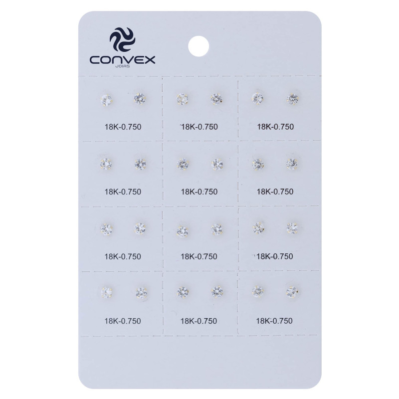 A Cartela dos Brinquinhos Baby é composta por 12 pares de brincos de ouro 18k