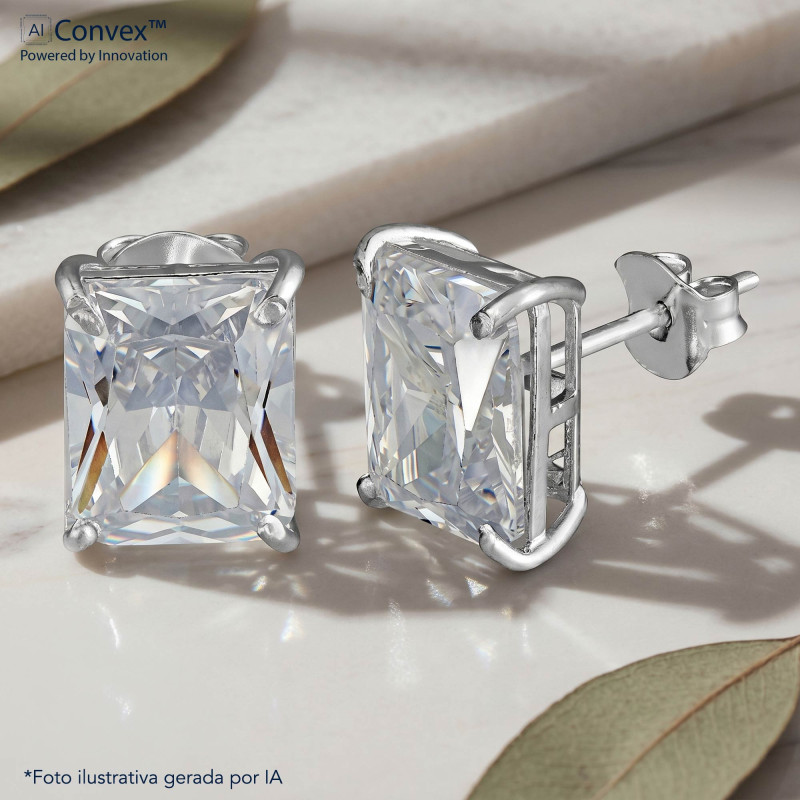 Brinco de Prata Coleção Fancy Retangular Cristal 8x10