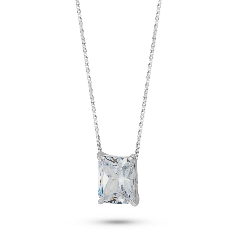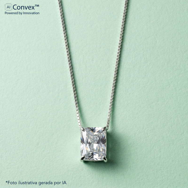 Colar de Prata Coleção Fancy retangular Cristal 8x10 45cm
