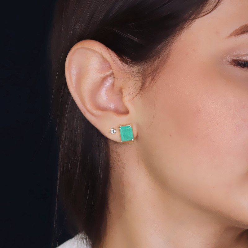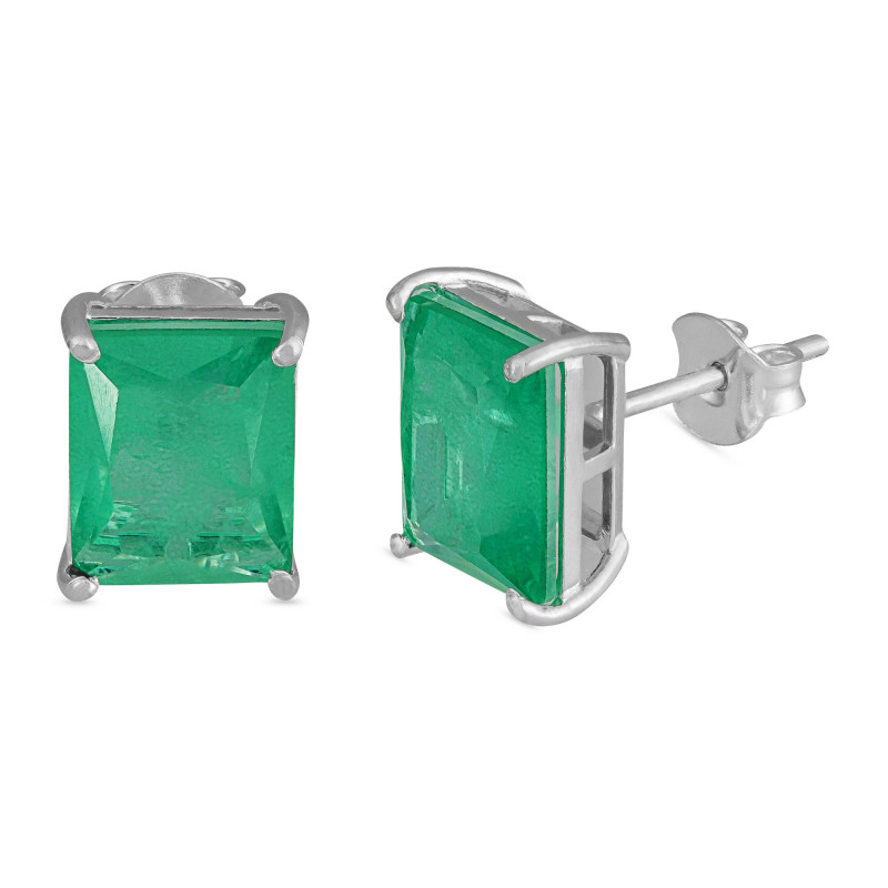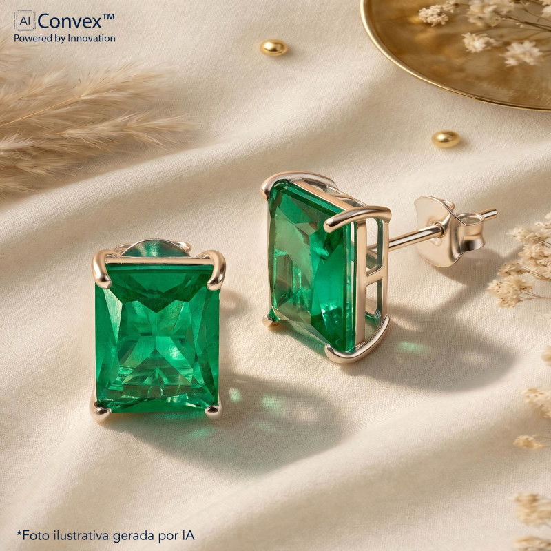 Brinco de Prata Coleção Fancy Retangular Fusion Verde 8x10