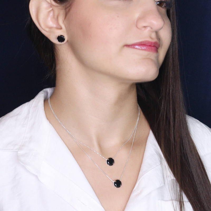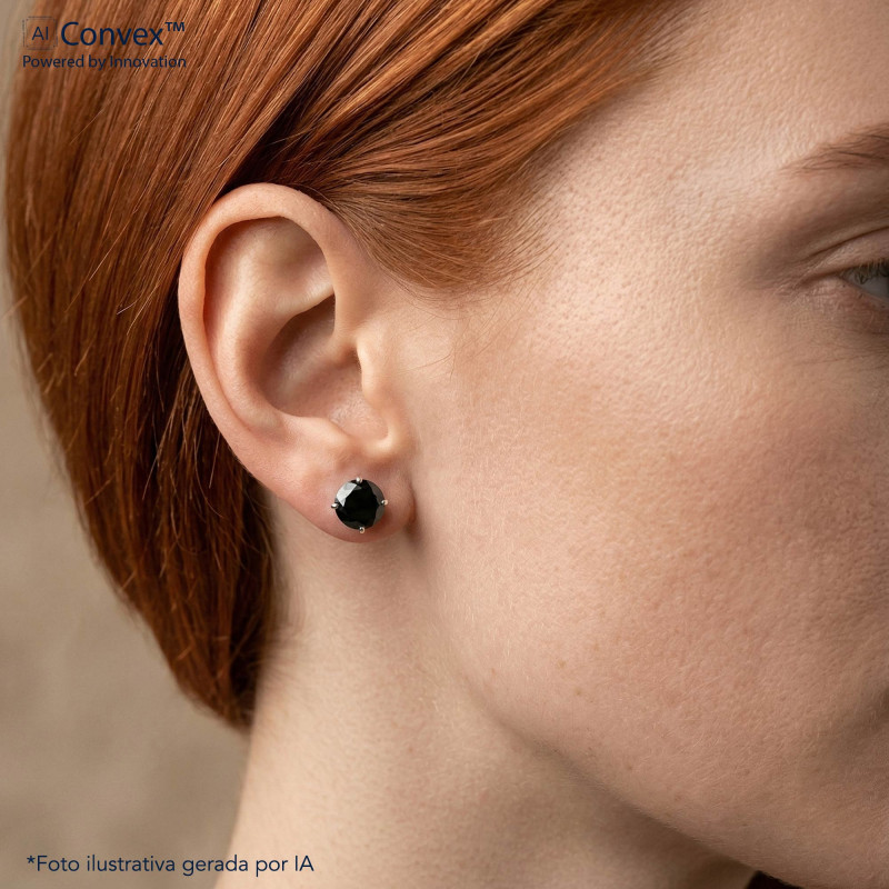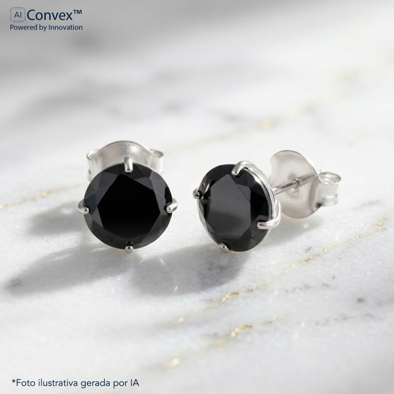 Brinco de Prata Ponto de Luz Coleção Fancy Zircônia Negra 10mm
