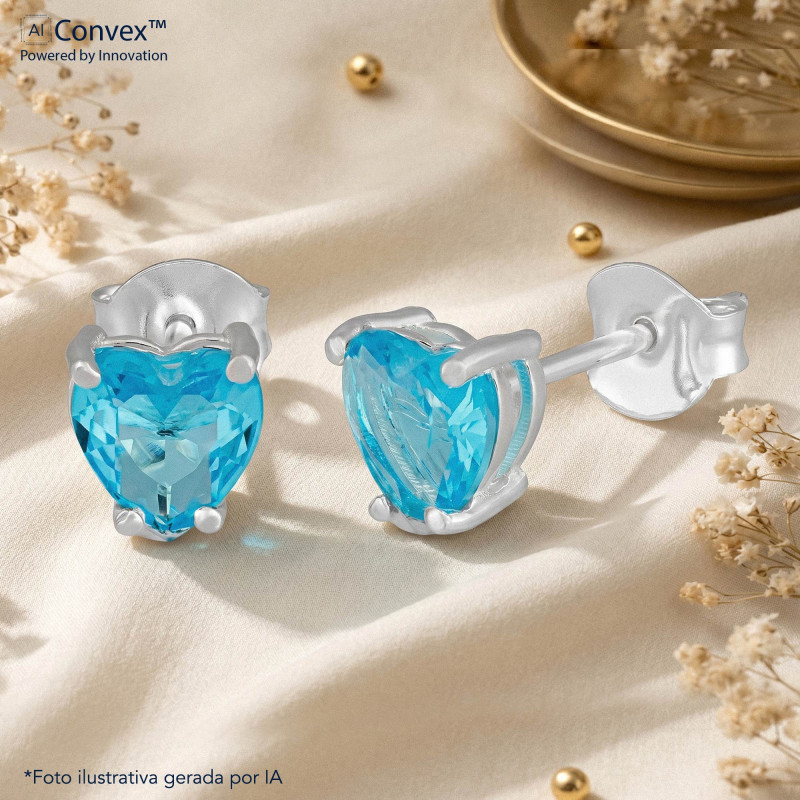 Brinco de Prata Ponto de Luz Coleção Fancy Coração Zircônia SKY 6mm