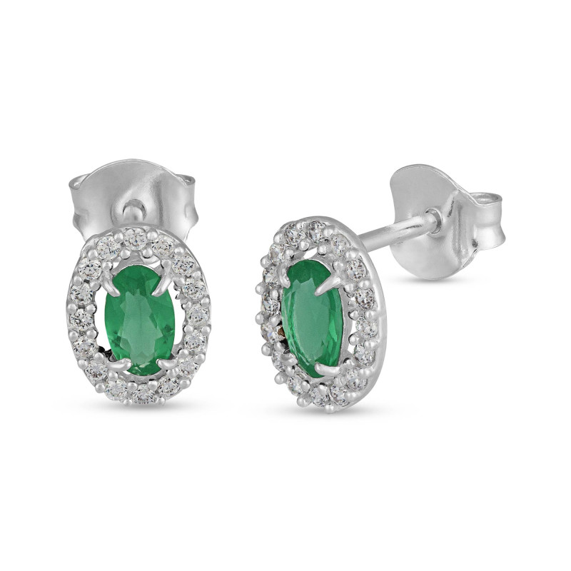 Brinco de Prata Coleção Princess Zircônia Oval Esmeralda 5x3