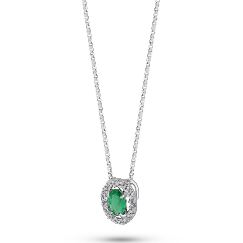 Colar de Prata Coleção Princess Zircônia Oval Esmeralda 5x3 45cm