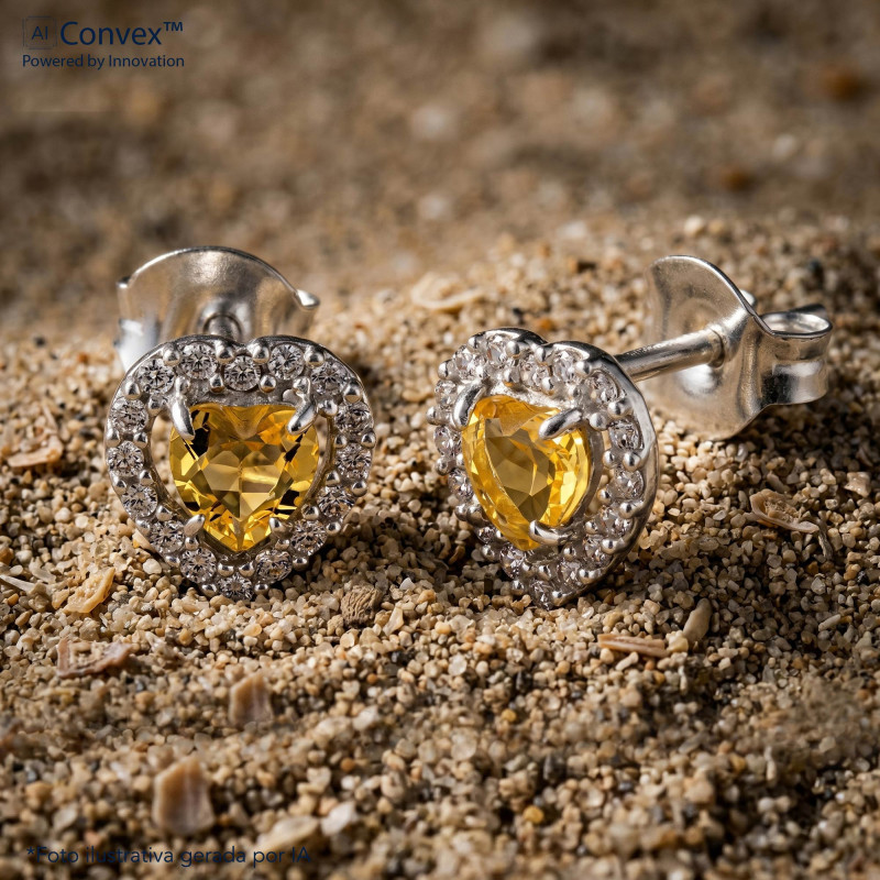 Brinco de Prata Coleção Princess Coração Yellow 4mm