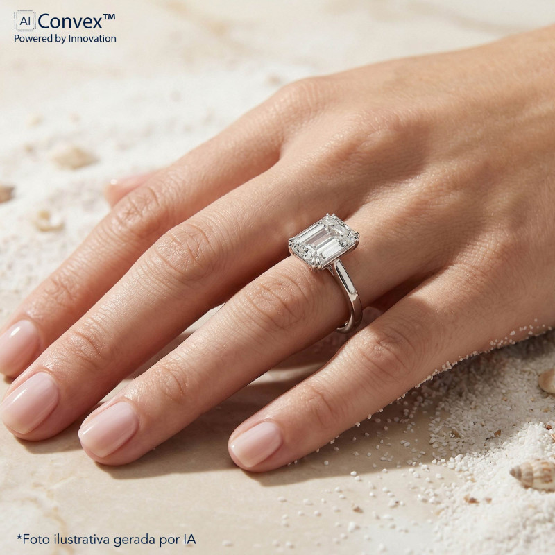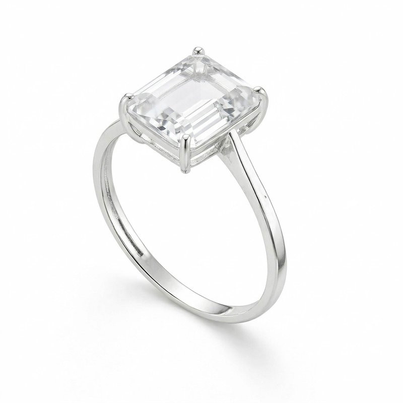 Anel de Prata Coleção Fancy retangular Cristal 8x10