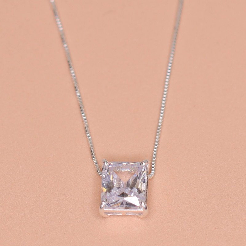 Colar de Prata Coleção Fancy retangular Cristal 8x10 45cm