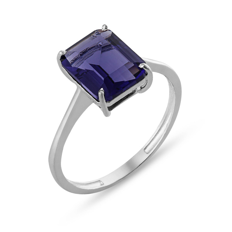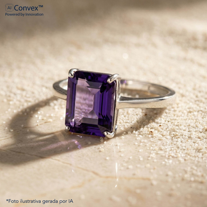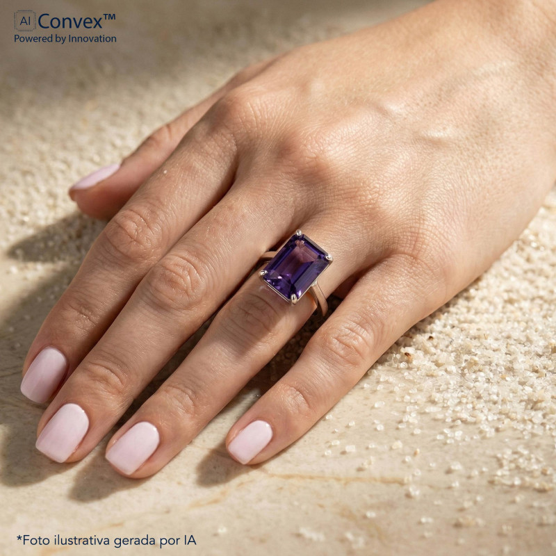 Anel de Prata Coleção Fancy retangular Cristal Tanzanita 8x10