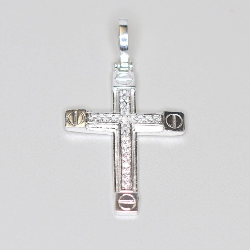 Pingente de Prata Cruz com Zircônias Brancas 30x20