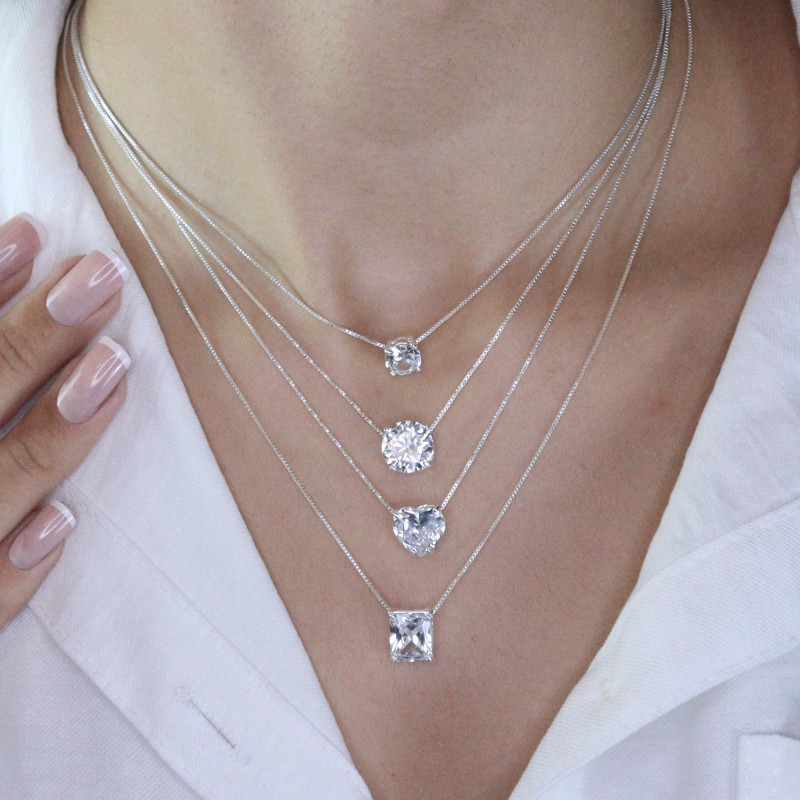 Colar de Prata Coleção Fancy Coração Zircônia Cristal 10mm 45cm