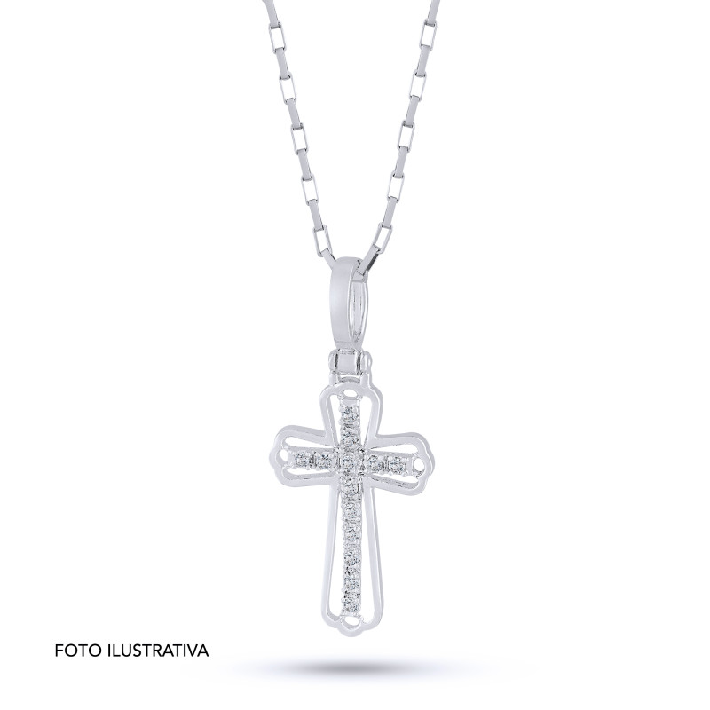 Material: Prata 925 Trabalhada Cruz com Cruz com Zircônias brancas