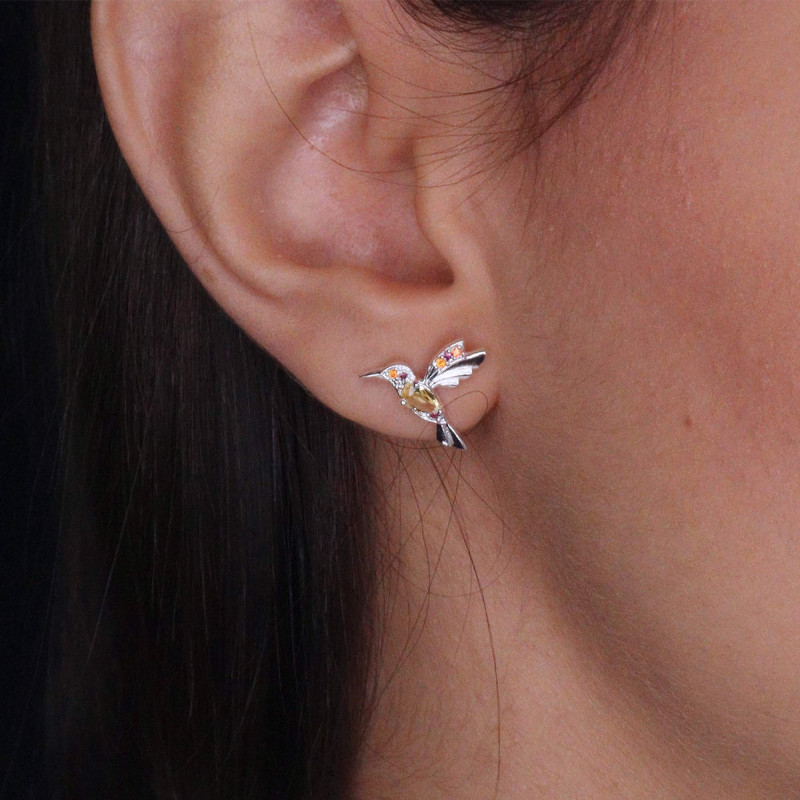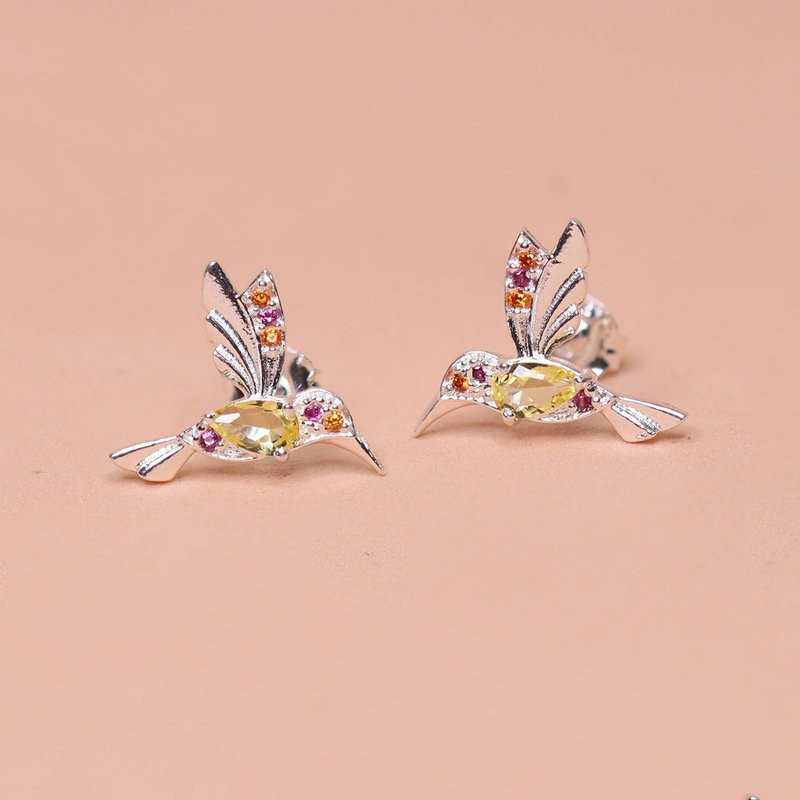 Brinco de Prata Beija Flor Coleção Florescer Zircônia Yellow 14x10mm